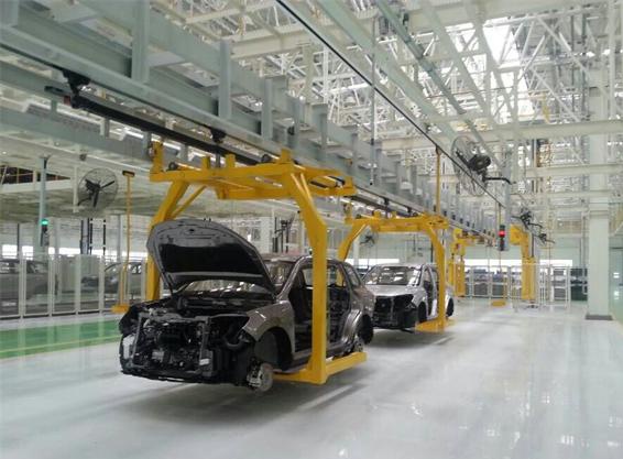 本總裝生產線用于B60X(SUV)、MPV等車型的內飾裝配、底盤裝備、最終裝配機性能檢測、淋雨試驗、出廠檢查線等總裝工序,生產線達產時雙班年產12萬輛汽車。