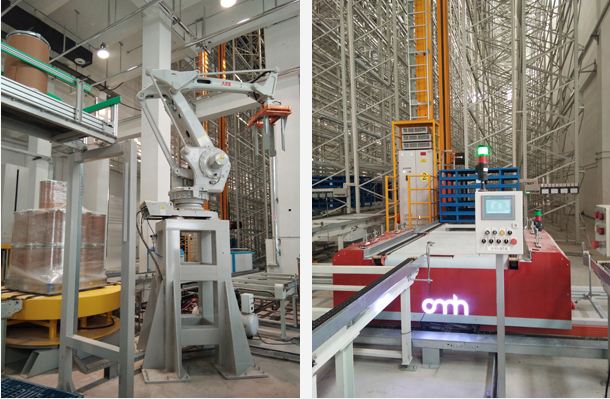 該項目從生產車間生產線末端將成品由激光導引AGV叉車自動輸送至立體倉庫完成入庫,由機械手和伸縮皮帶機完成空桶的自動入庫及成品的揀選出庫。整托盤成品由AGV完成裝車。項目由箱式輸送系統、機器人碼垛系統、庫前托盤出入庫輸送系統、貨架系統、堆垛機系統、托盤、WCS電氣控制系統、網絡通訊系統等組成。立體倉庫符合GMP/FDA認證標準。