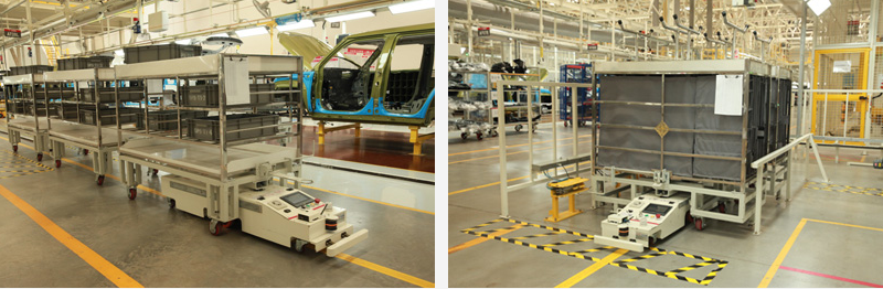 北汽(鎮(zhèn)江)汽車有限公司屬于北汽集團(tuán),主要生產(chǎn)中高端SUV及核心零部件,該AGV項(xiàng)目用于總裝車間內(nèi)飾線與車門線物料配送,配送方式采用SPS供給模式,并結(jié)合線邊自動(dòng)上下線系統(tǒng),將物料按正確的數(shù)量在準(zhǔn)確的時(shí)刻運(yùn)送到正確的地點(diǎn),實(shí)現(xiàn)無人化配送,滿足生產(chǎn)線40JPH節(jié)拍。AGV采用磁道航導(dǎo)引系統(tǒng),并通過控制系統(tǒng)與其他管理系統(tǒng)即時(shí)通訊,可實(shí)現(xiàn)無人自動(dòng)化運(yùn)輸,是汽車行業(yè)等提升行業(yè)競(jìng)爭(zhēng)力、減少人工成本、提高倉配效率的選擇。